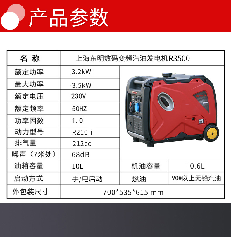 * 表示必填采購:3.5KW房車數碼變頻手提式汽油發電機R3500