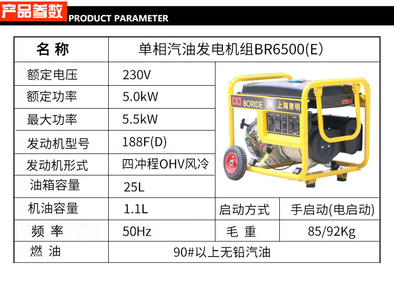 BR6500 路政工程5000W小型汽油發(fā)電機組