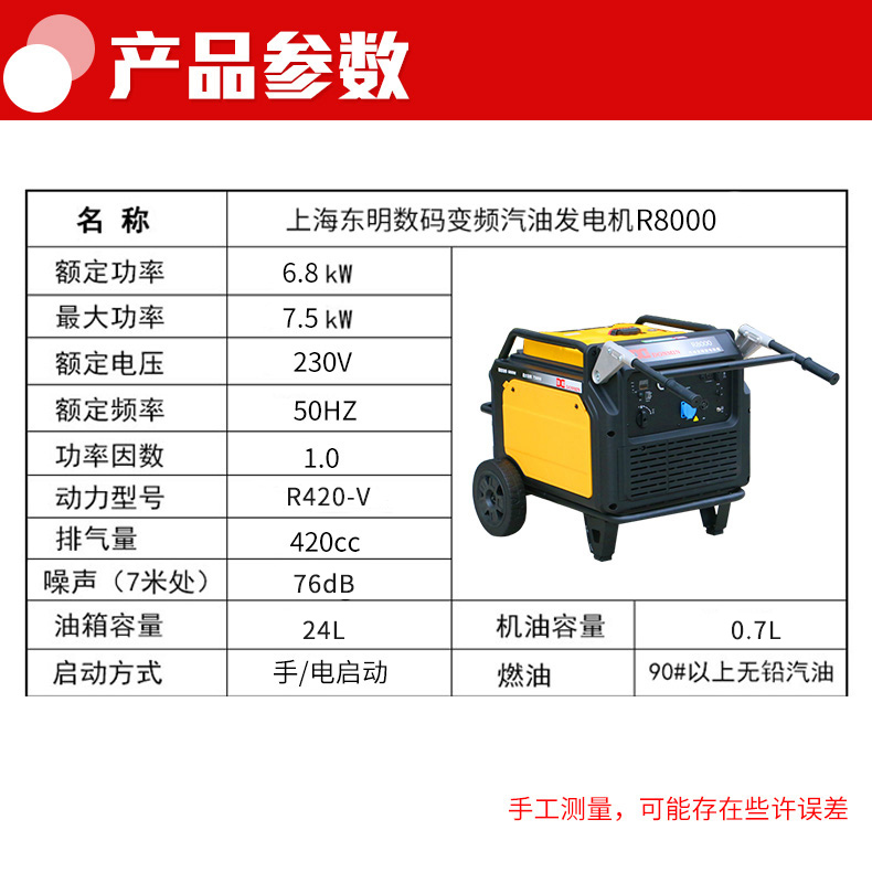 上海東明7.5KW 7000W小型汽油發電機 R8000;