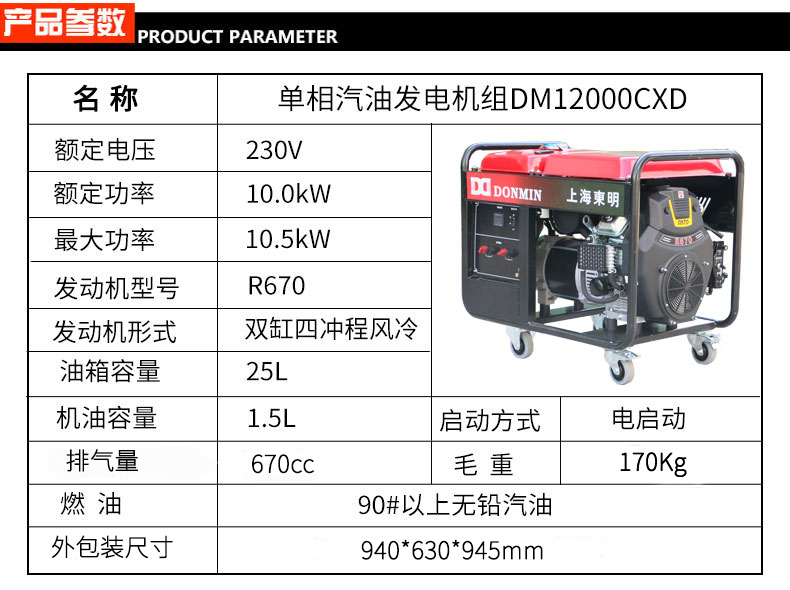 * 表示必填采購(gòu):?jiǎn)蜗?0kW小型汽油發(fā)電機(jī)組DM12000CXD