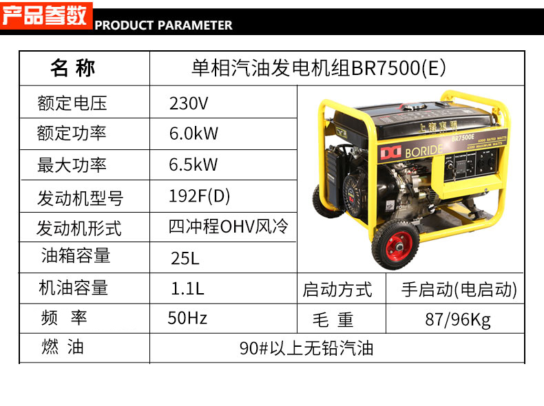 單相6kW小型汽油發(fā)電機(jī)組 BR7500(E)